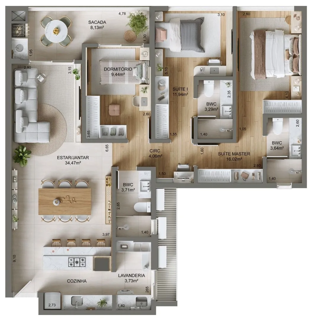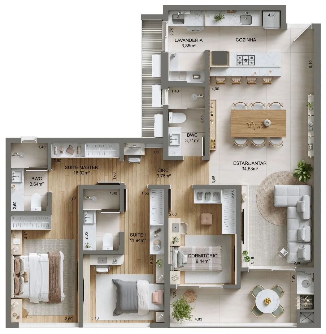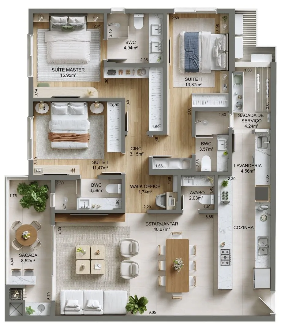 Apartamento 3 Quartos com 3 Suítes e 136m² - Campinas