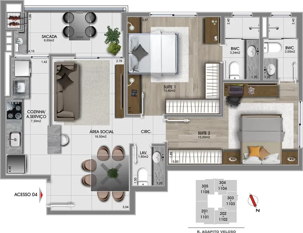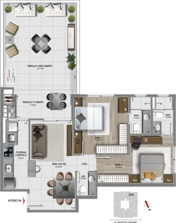Morar bem é ter uma vida mais leve e poder contar com mais facilidade e mobilidade acima de tudo.Um empreendimento que oferece à você opções para escolher o lar que representa os seus sonhos e a melhor mudança em sua vida.2 dormitórios com 1 ou 2 suítes3 dormitórios com 2 suítesEspera para Split na área social e suítesPiso vinílico nas suítes e porcelanato na área socialVentilação cruzada e ótima orientação solarSacada integrada a cozinha e área social nos apartamentos de 3 dormitóriosCondomínio: Vaga de garagem para 2 veículos nos apartamentos de 3 dormitóriosBicicletárioIluminação com lâmpadas de LED nas áreas comunsSensores de presença nas áreas comuns internasReaproveitamento de água da chuvaÁrea de lazer localizada na cobertura com ambientes entregues mobiliados, decorados e climatizadosPronto para morar!*Os valores e a disponibilidade estão sujeito a alterações sem aviso prévio!