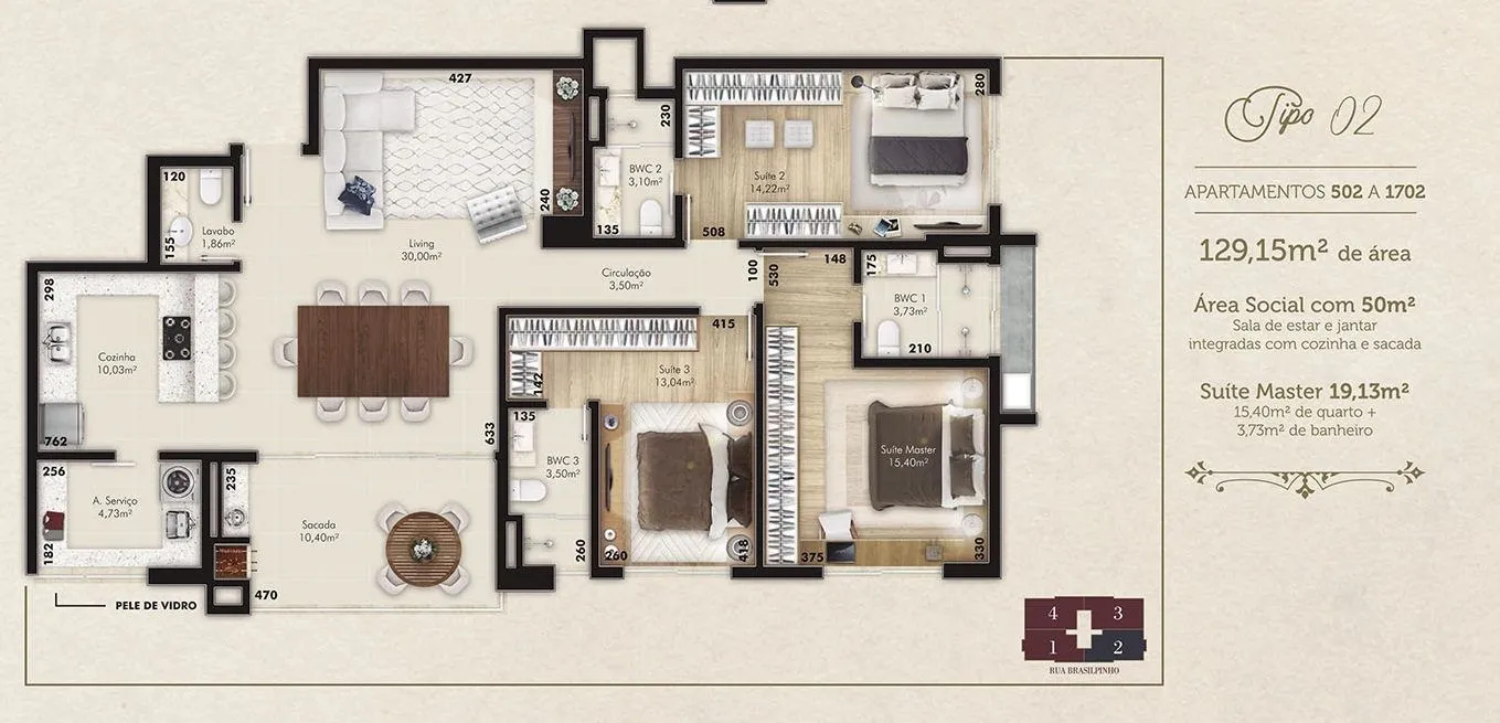 Apartamentos de Alto Padrão com 3 suítes ,1 suíte master com 19 m², Área social com 50 m², Integração com todos os ambientes: -Sala, Cozinha, sala de Jantar e Sacada, Porta da sacada com ampla abertura, excelente área de lazer com Piscina coberta, aquecida e com cascata, Fitness com vista para a piscina aquecida, Salão de festas integrado ao terraço, Espaço Gourmet integrado a sala de jogos, Brinquedoteca integrada ao Playground!Pronto para morar!**OS VALORES E A DISPONIBILIDADE ESTÃO SUJEITOS A ALTERAÇÕES SEM AVISO PRÉVIO!!