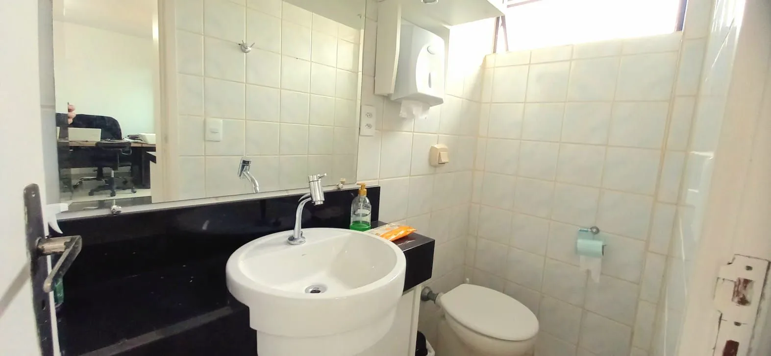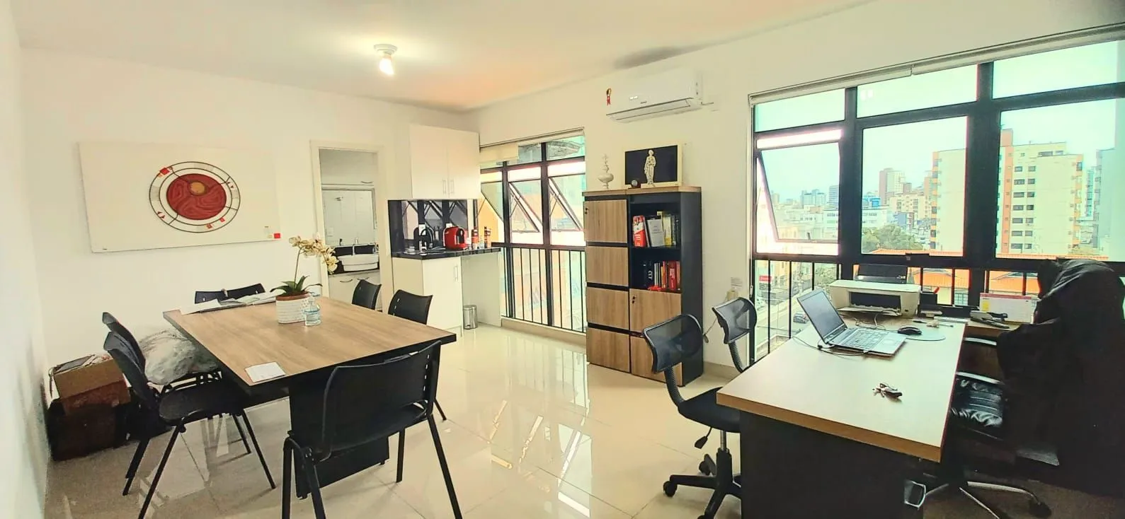 Sala comercial de 25m2, com vaga de garagem livre e coberta, piso em porcelanato, persianas, split e moveis...janelas voltadas para o sol da manhã...Portaria e zeladoria, elevador até a garagem...simples e econômico...Localizado no Kobrasol ...ideal para sair do aluguel ou investir...um negócio de ocasião...aceita carro como parte do pagamento...marque uma visita agora mesmo...